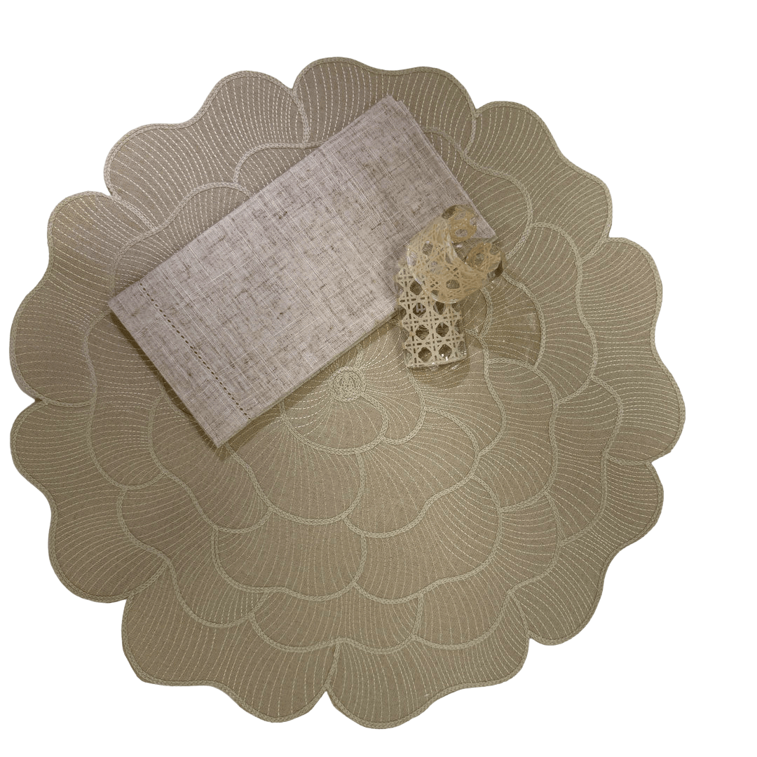 Jogo Americano Camelia em bege, moderno e pratico, Facilitando a arte de receber com elegância e glamour.